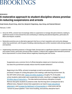 A Restorative Approach to Student Discipline Shows Promise in Reducing Suspensions and Arrests