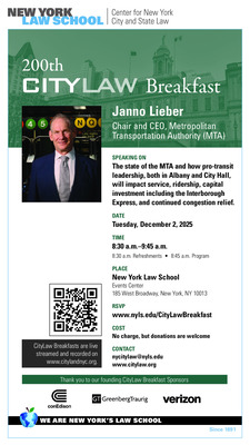 Janno Lieber Chair and CEO, Metropolitan Transportation Authority (MTA), SPEAKING ON The state of the MTA and how pro-transit leadership, both in Albany and City Hall, will impact service, ridership, capital investment including the Interborough Express, and continued congestion relief.
